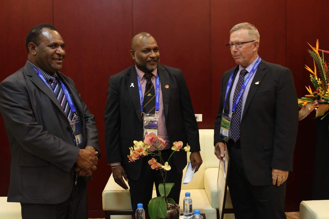 (Left to right) PNG Tourism Promotion Authority Chief Executive Jerry Agus, PNG Tourism, Arts and Culture Minister Emil Tammur (second from left) and Australian Assistant Minister for Trade, Tourism and Investment Mark Coulton following bilateral talks on the margins of the APEC Tourism Ministers Meeting in Port Moresby. Photo credit: DFAT/Aaron English.