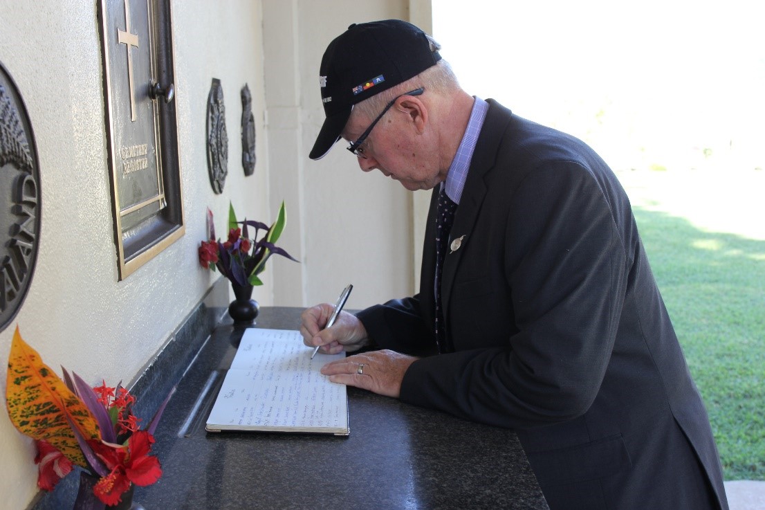 Assistant Minister for Trade, Tourism and Investment leaves a commemorative note at the Bomana War Cemetery in Port Moresby. Photo credit: DFAT/Aaron English.