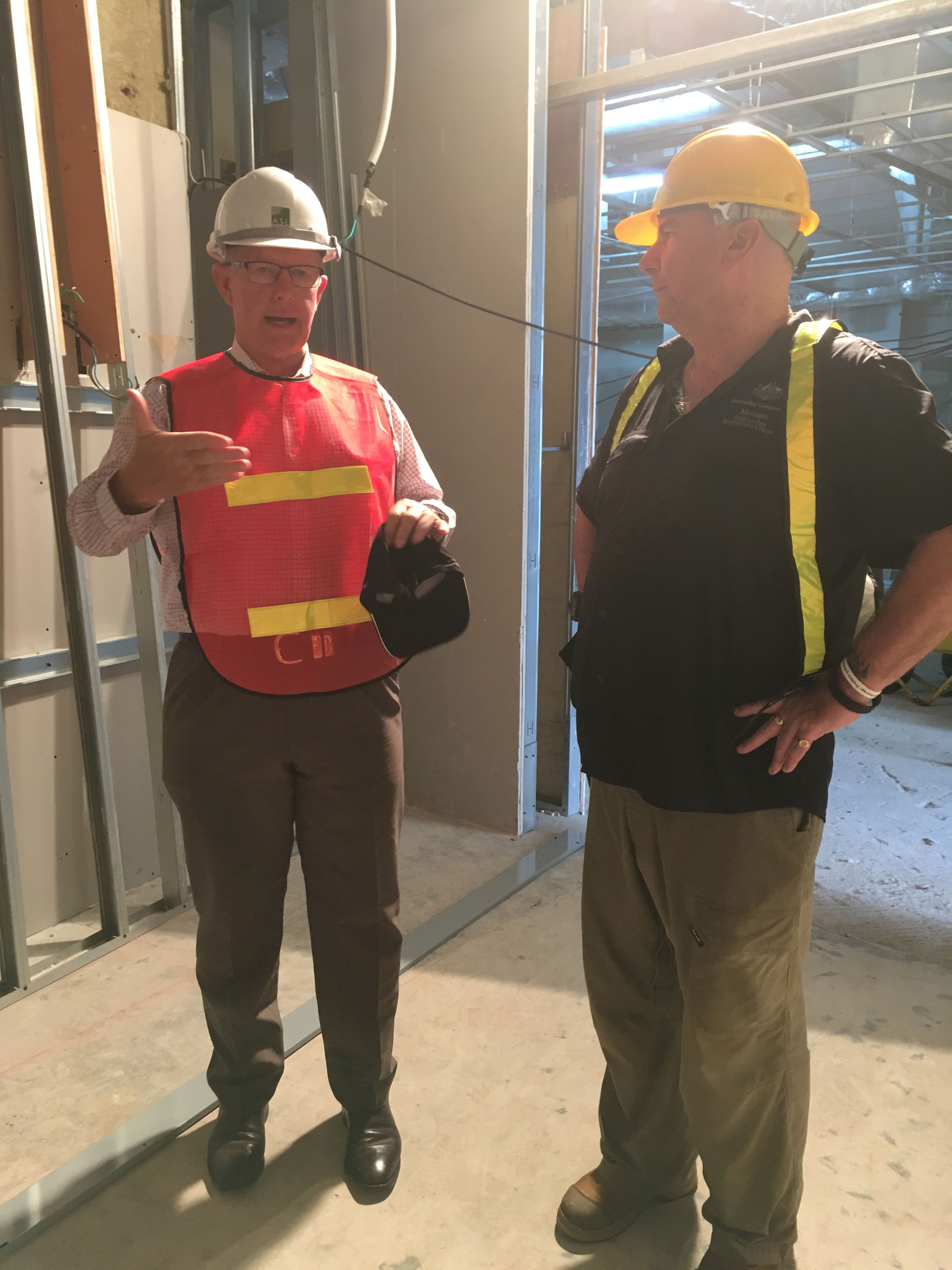Assistant Minister Mark Coulton with Hellfire Pass Museum Manager Mick Clarke inspect the construction of new interactive museum at Hellfire Pass, in Kanchanaburi Province, Thailand. Photo credit: Australian Embassy Bangkok