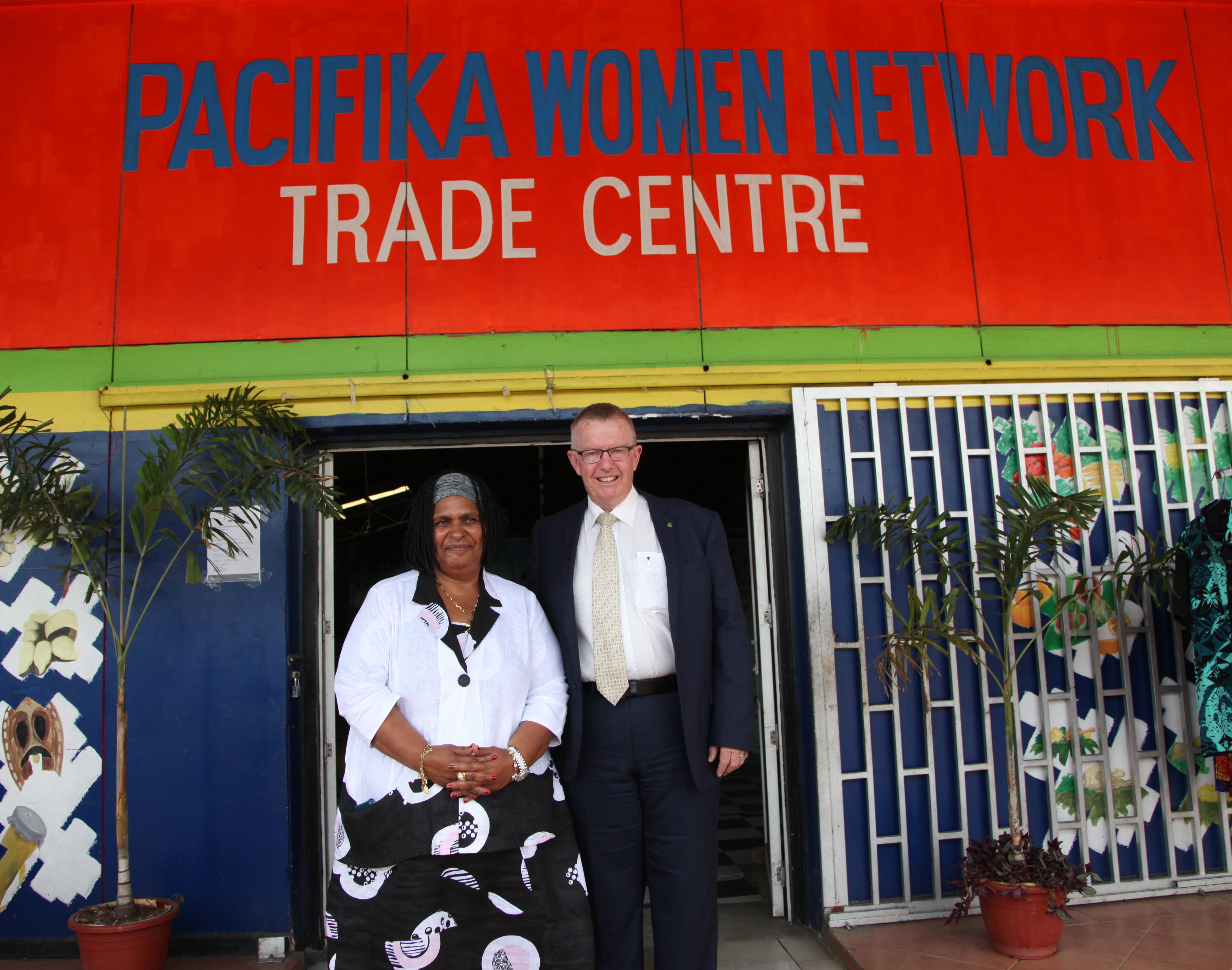 Assistant Minister for Trade and Investment Mark Coulton with founder of Pasifika Women Network, Ruth Undi after an agriculture roundtable with agriculture sector stakeholders on biosecurity. Credit: DFAT